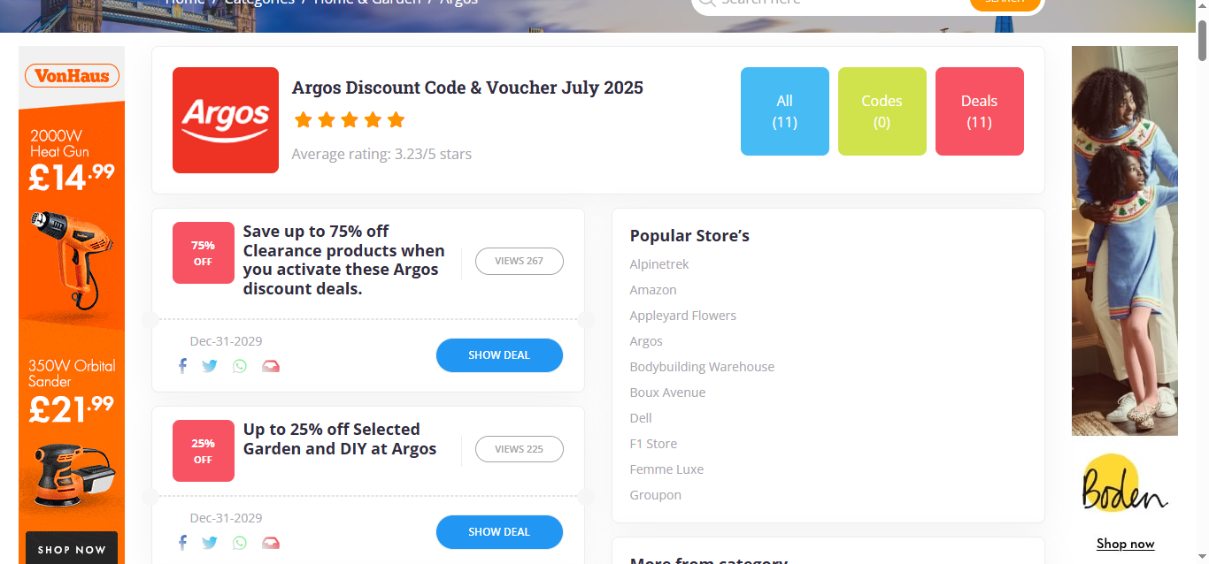 - Direct links to Argos’s own voucher code hub and promo pages.