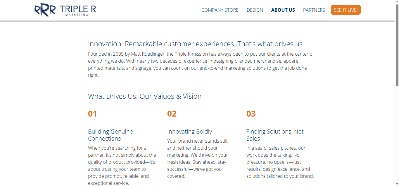 Established in 2005 by Matt Ruedlinger, Triple R has nearly two decades of experience in delivering high-impact, client-centered marketing solutions.
