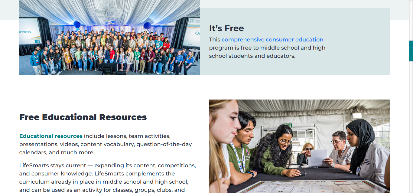 - Main Purpose: Provides opportunities for student leaders to shine by engaging in active learning through classroom activities, community involvement, and service projects rooted in the LifeSmarts curriculum.