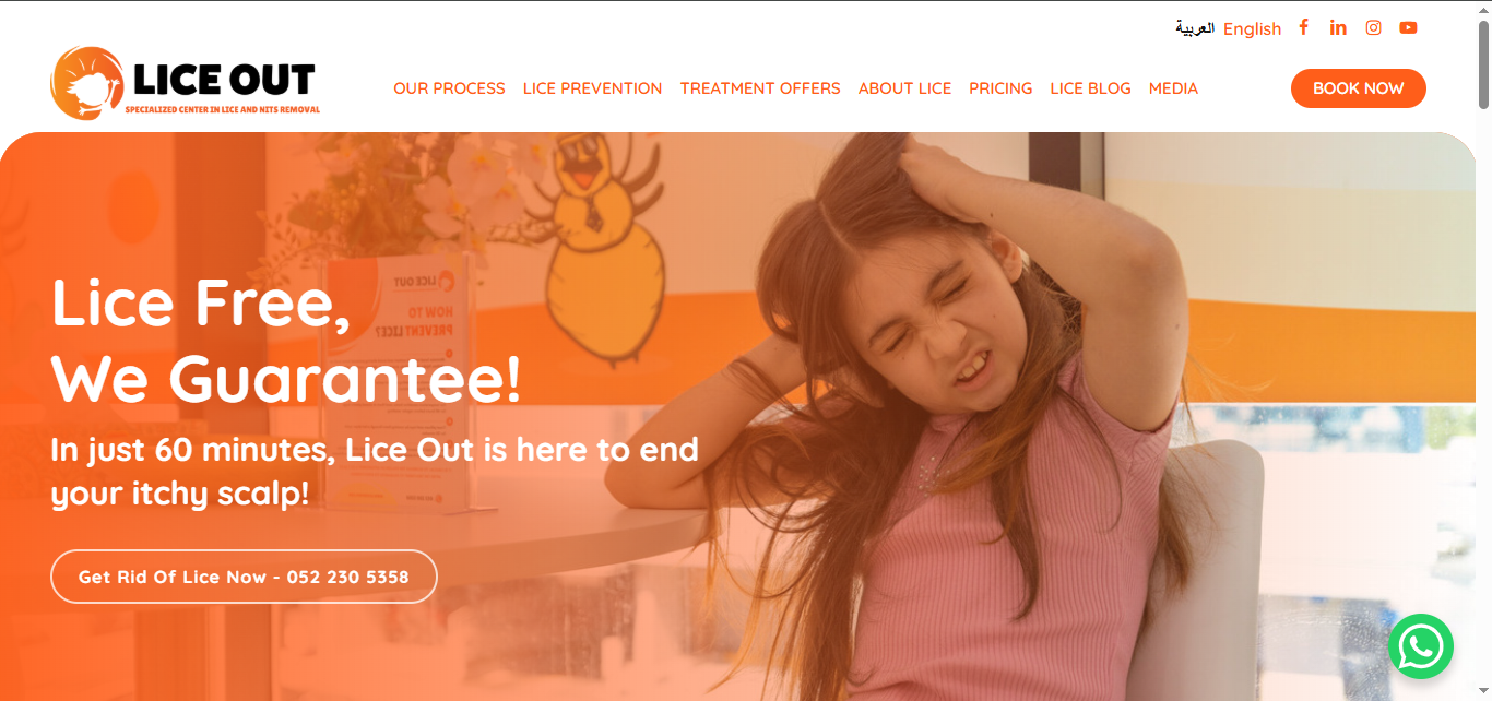 - Main Purpose: Serves as Dubai’s premier online platform for professional lice removal services and products, featuring guaranteed, 100% natural treatments.