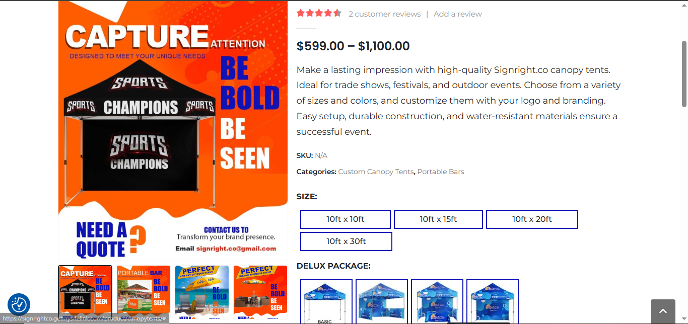- Main Purpose: Dedicated to delivering high-quality promotional products—especially customized canopies and camp gear—while offering extensive branding and customization options to reflect each client’s unique identity.