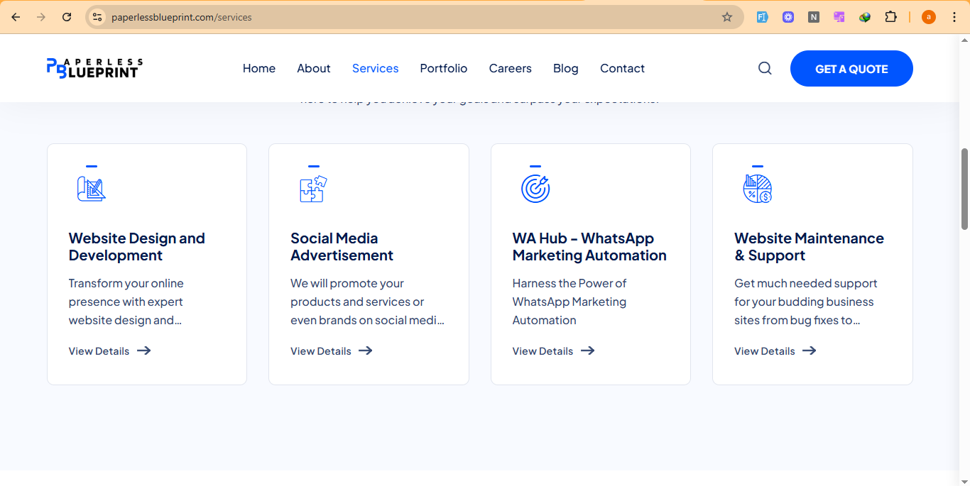 - Operations Management: Provides business support services such as development of e-commerce sites, payment gateway integrations, chatbot automation, and digital marketing, enabling clients to operate more efficiently online.