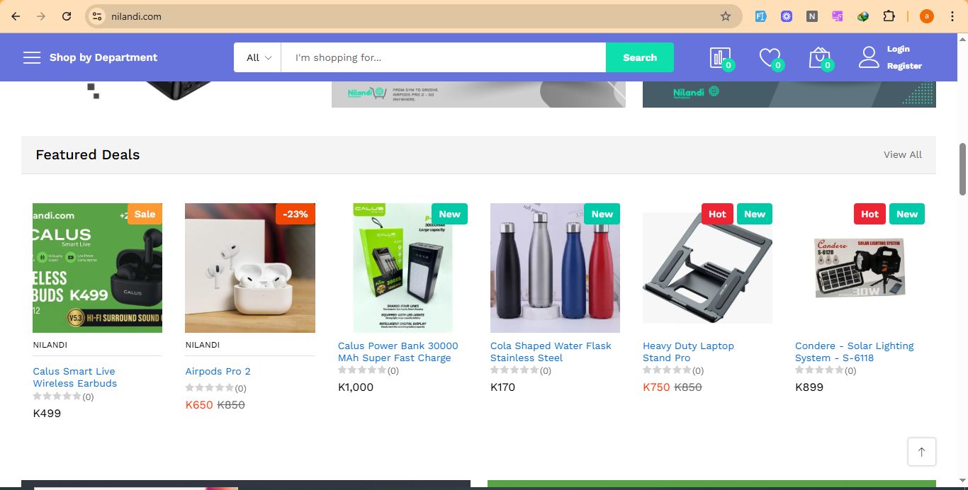 - Operations Management: Enables day-to-day e-commerce operations: sellers can list goods across categories (electronics, clothing, household, etc.), buyers can browse, filter, add to cart, and checkout. The site also allows “Stores” pages where individual sellers are listed.